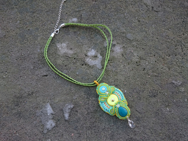 Kolejnym owocem moich wolnych chwil są te oto kolczyki. Stworzyłam je z myślą o wyzwaniu na Kreatywnym Kufrze, którego tematem była Maria Skłodowska-Curie. Nie była to kobieta strojna, raczej w swojej biżuterii głównym przesłaniem był umiar. Miałam problem jak ugryźć temat, mając do dyspozycji technikę soutache. Również dziś są kobiety, które nie odnajdują się we fantazyjnych wzorach biżuterii soutache i z myślą o nich również owe kolczyki powstały - skromne, nie rzucające się w oczy i kobiece. Kolor zielony jest kojarzony z radioaktywnością, jednak użycie w tym przypadku neonów wyeliminowałoby mój zamysł co do skromnej biżuterii. Dlatego pozostałam przy brudnych zieleniach z kobiecym akcentem w postaci kryształków Preciosa Octagon, które kupiłam już daawno dawno temu i nie bardzo wiedziałam w co je wkomponować. A teraz już bez ogródek przedstawiam Wam zdjęcia moich kolczyków "Maria".